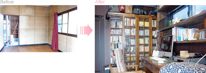 希望したとおり、昔の雰囲気を残しながら使いやすい間取りや思ったとおりの内装に仕上げられたのでとても満足しています。特にタタミコーナーの壁の色も営業担当の方に勧められた色ですが、これが思いのほか良くて気に入っています。書斎も思ったとおりにできて、今では勤めから帰っても、休みの日も、部屋にこもって好きなことをしています。