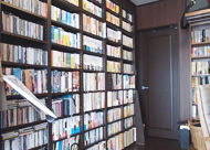 書斎の一面は作り付けの書棚としました。以前からあった書棚とともに蔵書や音楽CDが所狭しと収められています。